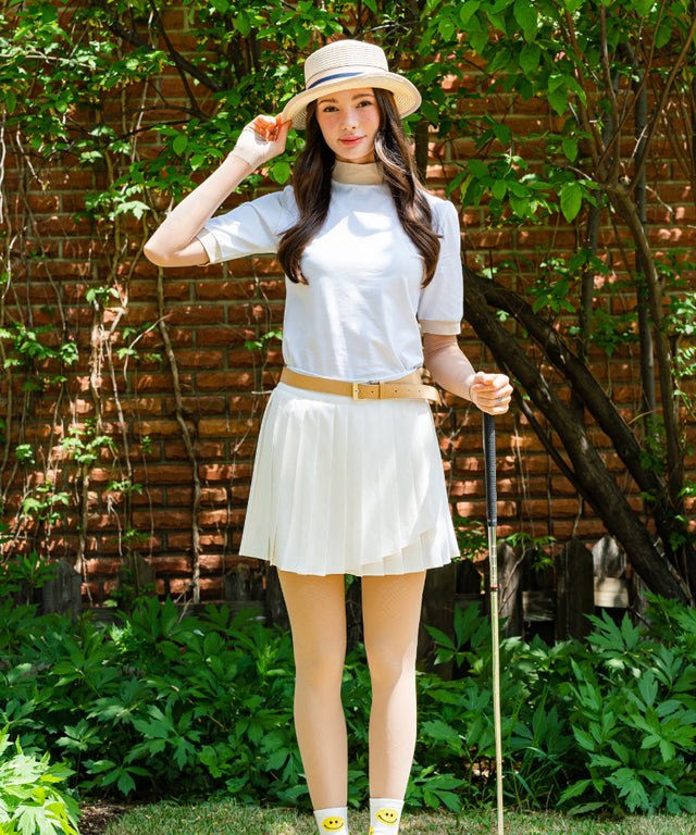 A wrist-type set that comes up to the wrist. Warmer type that reaches the wrist on one side and the back of the hand on the other side